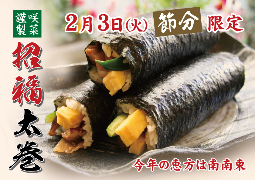 2026年1月5日 更新情報 2/3節分限定「恵方巻」 今年の節分は 2月3日(火)! 咲菜でも「五福太巻」「七福太巻」 2種類の恵方巻を販売いたします。 ご予約も承っております。 詳細は店頭にてご確認ください♪